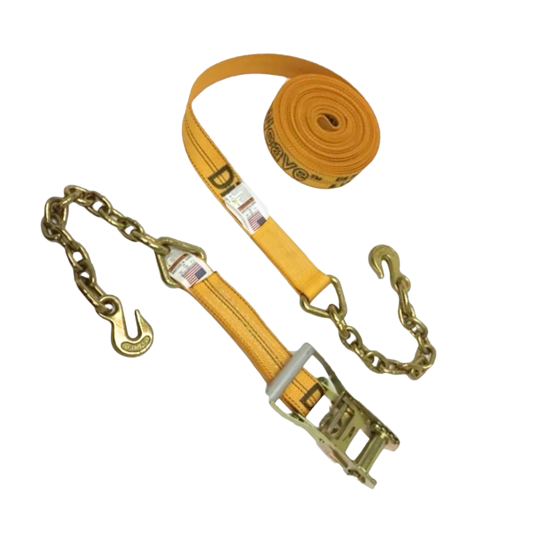 Ratchet Strap with Grab Hook Chain Ends - Diamond Weave